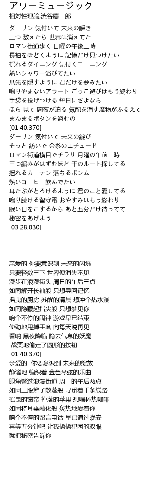 | [02:02.210] | ダーリン 気付いて 未来の綻び |