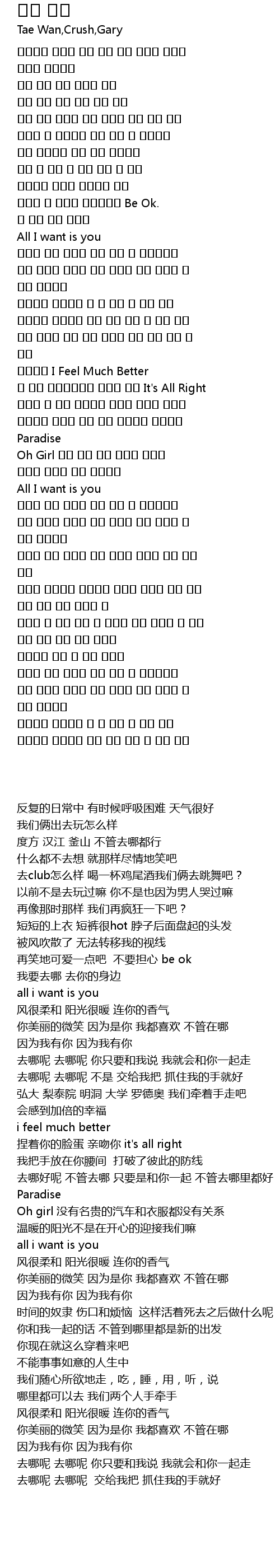 어디갈까 어디든 갈까 너와 함께라면 어디든지 Paradise |