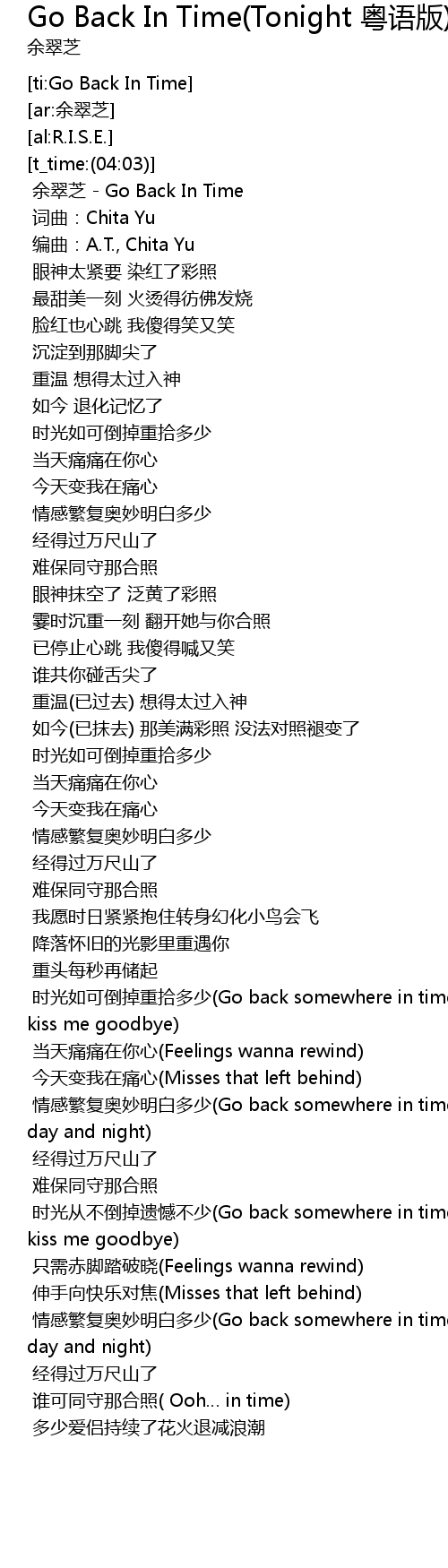 | [00:00.16] | 余翠芝 - Go Back In Time |