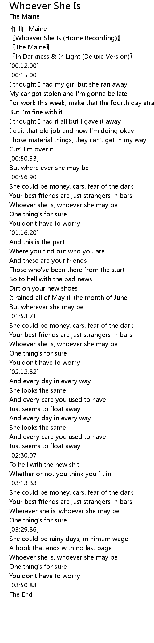 | [03:40.71] | Whoever she is, whoever she may be |