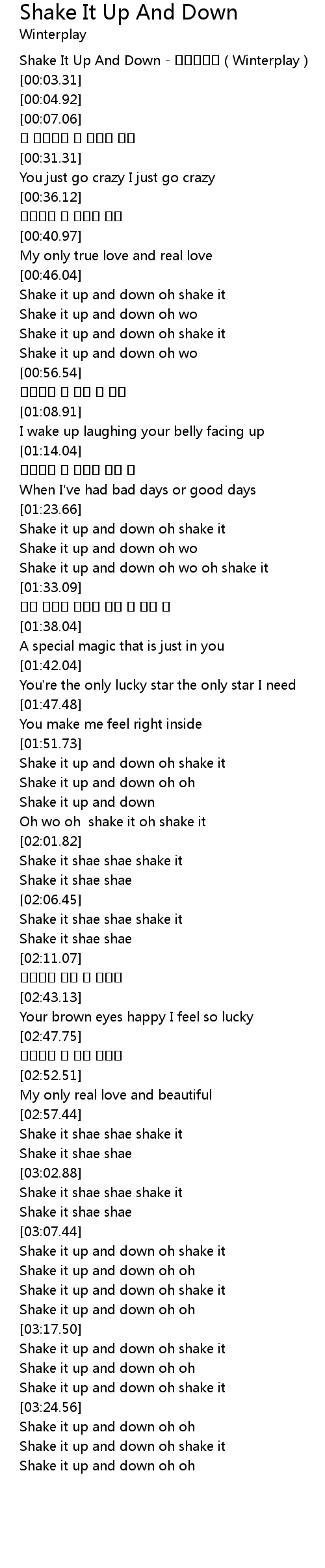 | [00:00.80] | Shake It Up And Down - 윈터플레이(Winterplay) |