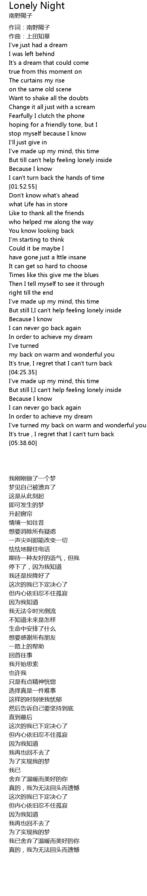 | [04:52.88] | But still I,I can't help feeling lonely inside |