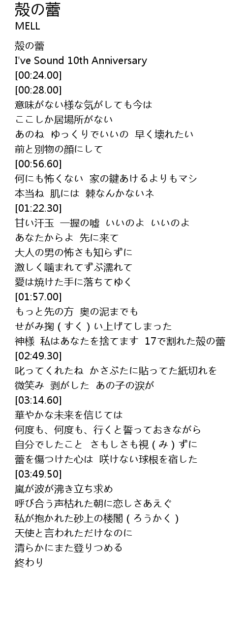 | [02:37.19] | 神様 私はあなたを捨てます 17で割れた殻の蕾 |
