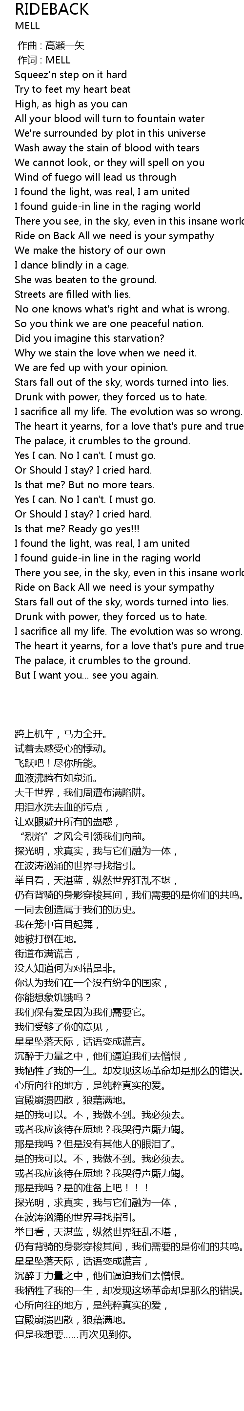 | [03:40.910] | Ride on Back All we need is your sympathy |