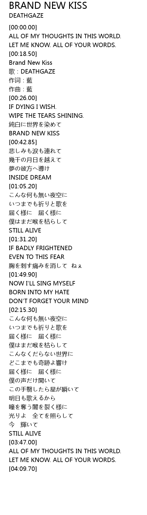 | [03:59.15] | ALL OF MY THOUGHTS IN THIS WORLD. |