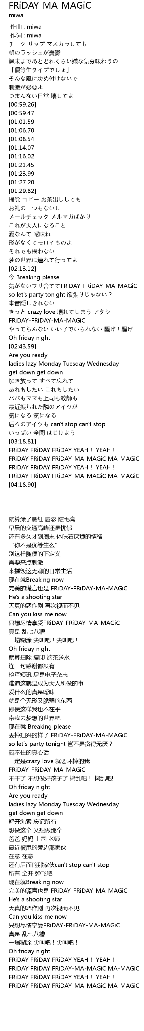 | [03:57.14] | FRiDAY FRiDAY FRiDAY-MA-MAGiC MA-MAGiC |