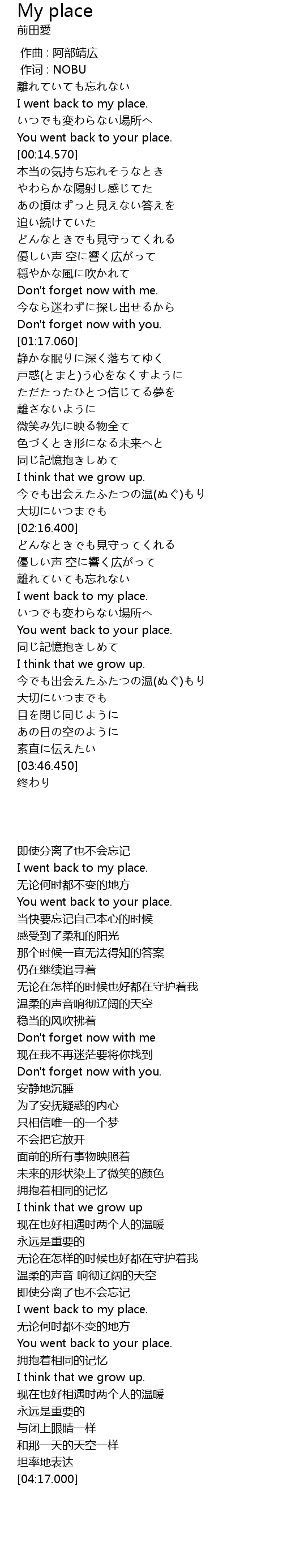 | [00:08.520] | いつでも変わらない場所へ |
