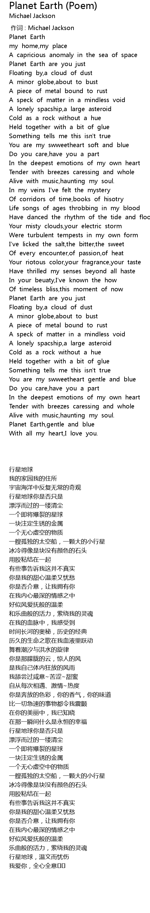 | [00:00.00] | 作词 : Michael Jackson |