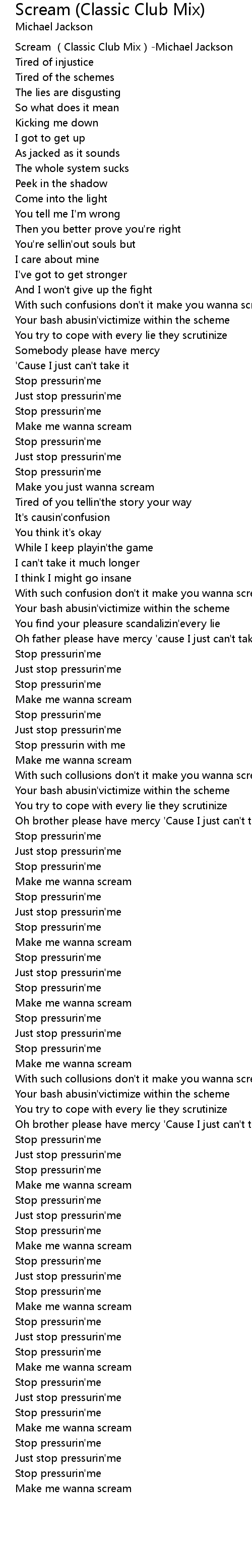 | [00:01.320] | Scream (Classic Club Mix)-Michael Jackson |