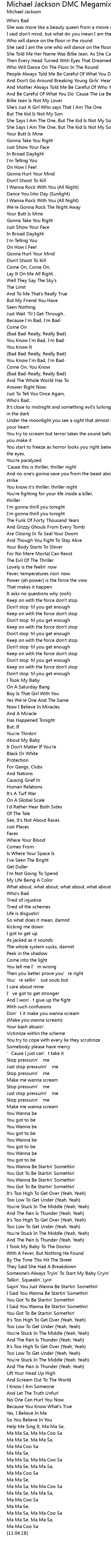 | [00:41.74] | She Told Me Her Name Was Billie Jean, As She Caused A Scene |