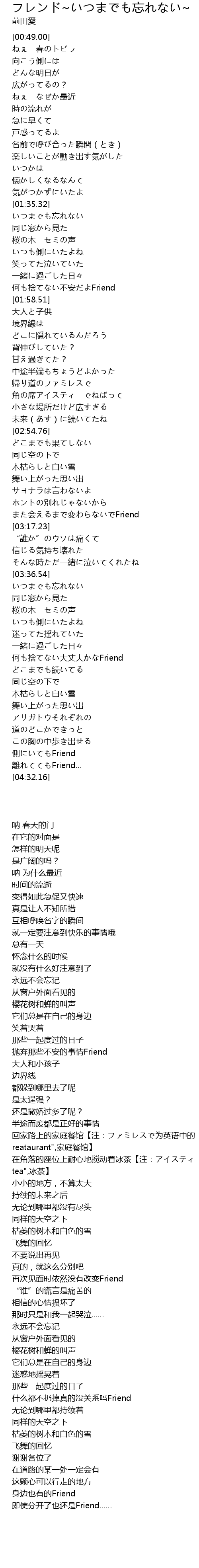 | [03:58.70] | 何も捨てない大丈夫かなFriend |