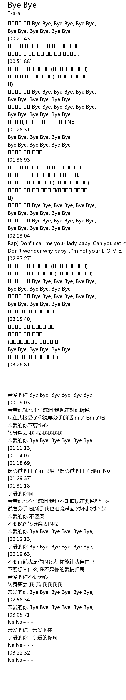 | [02:19.63] | Bye Bye, Bye Bye, Bye Bye |