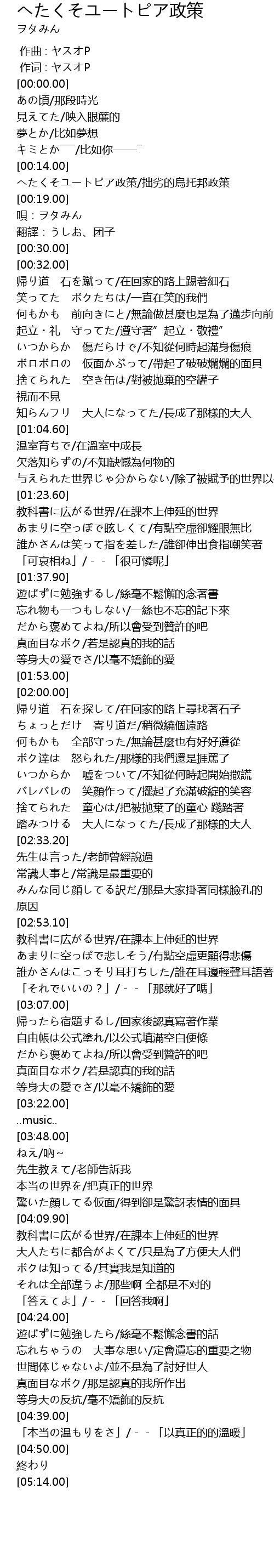 | [00:16.00] | へたくそユートピア政策/拙劣的烏托邦政策 |