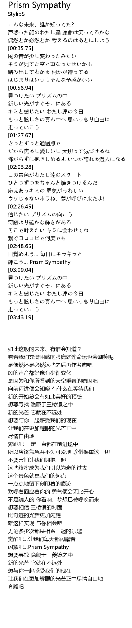 | [03:03.93] | 輝こう… Prism Sympathy |