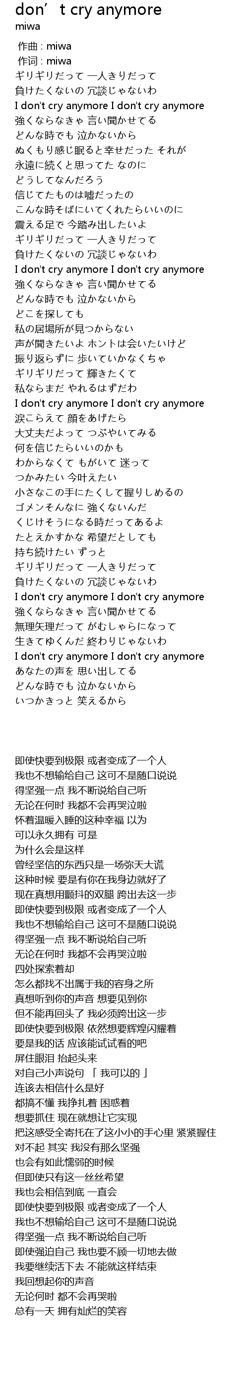 | [02:29.230] | I don't cry anymore I don't cry anymore |