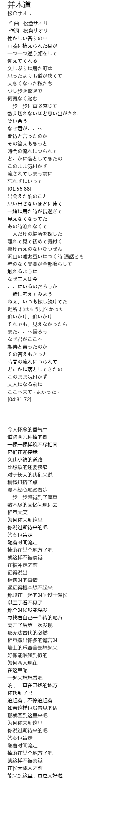 | [00:01.00] | 作词 : 松倉サオリ |