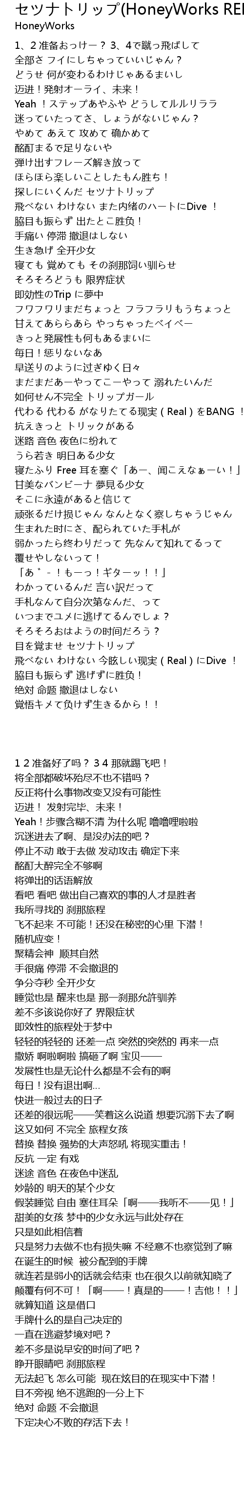 | [03:33.04] | 目を覚ませ セツナトリップ |