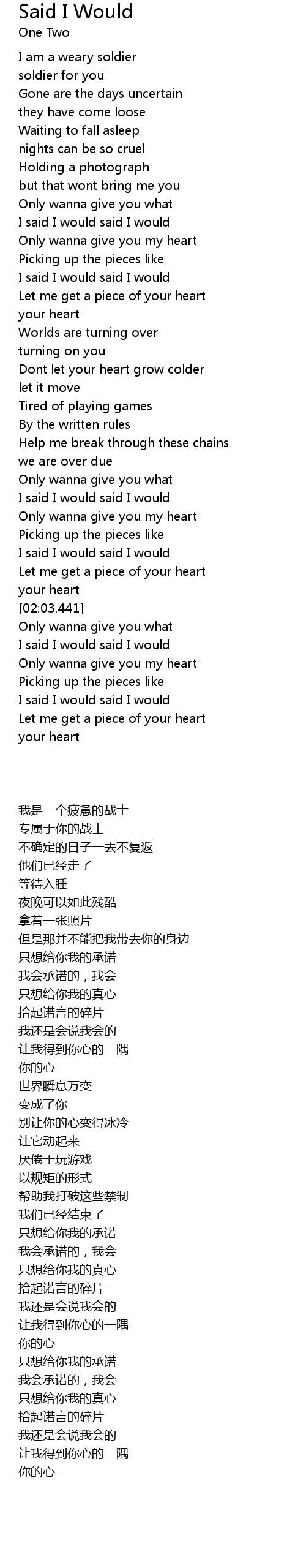 | [02:19.291] | I said I would said I would |