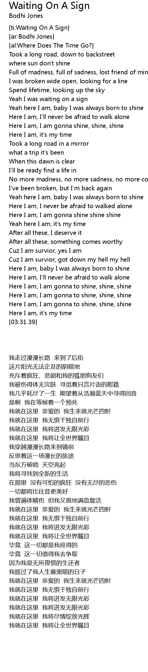 [ti:Waiting On A Sign] |