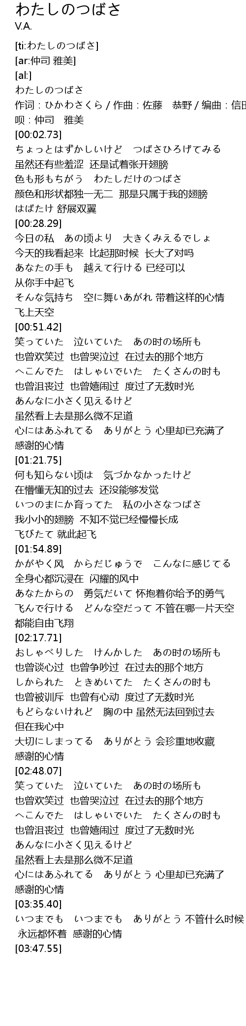 | [00:00.60] | わたしのつばさ |