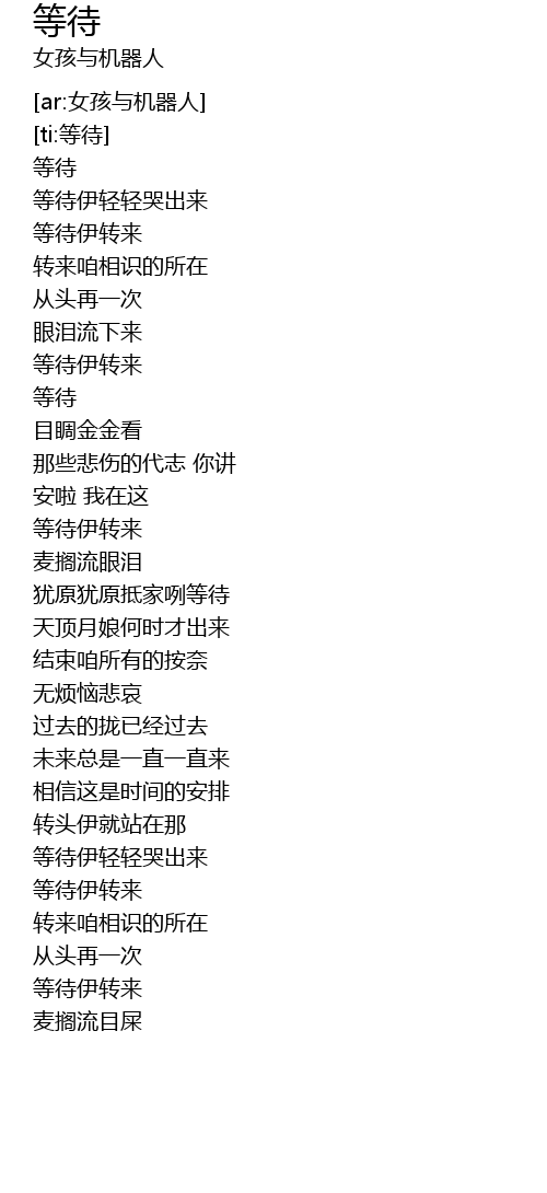 | [01:44.22] | 犹原犹原抵家咧等待 |
