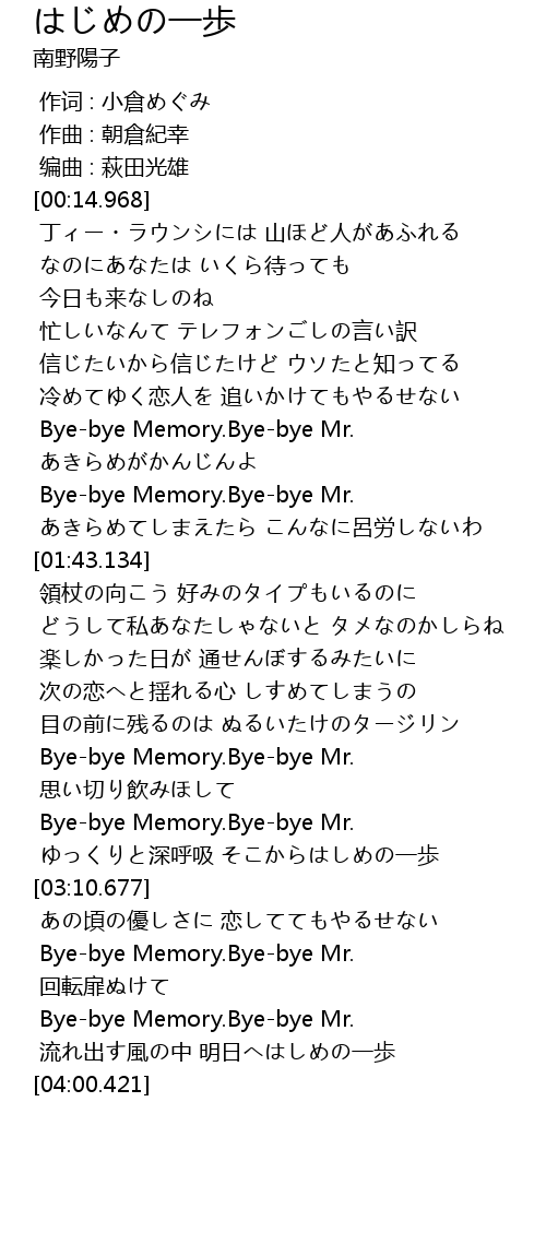 | [01:19.086] | Bye-bye Memory.Bye-bye Mr. |
