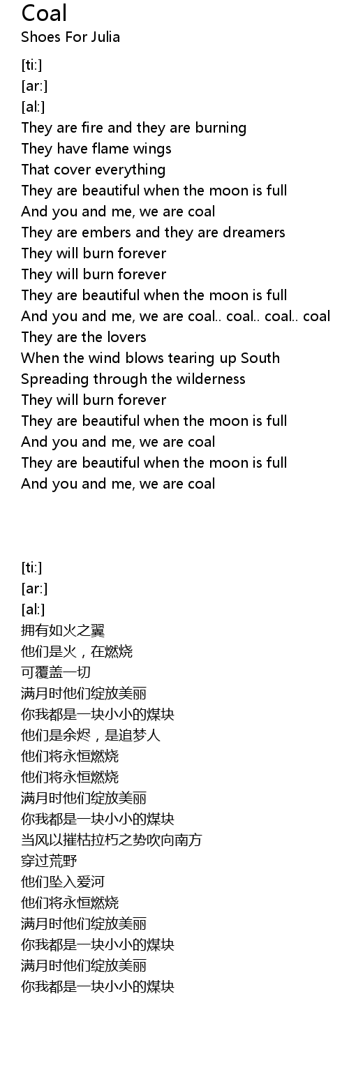 And you and me, we are coal.. coal.. coal.. coal |