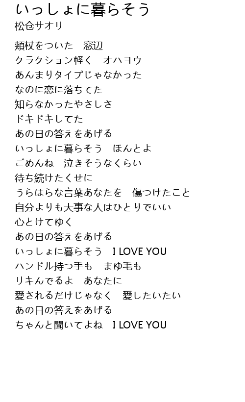 いっしょに暮らそう I LOVE YOU |