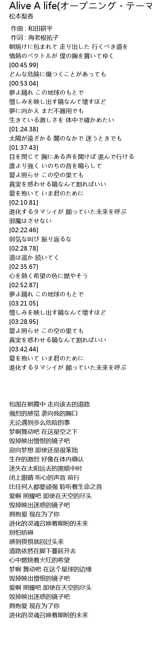 | [01:44.74] | 誰より強く いのちの音を鳴らして |