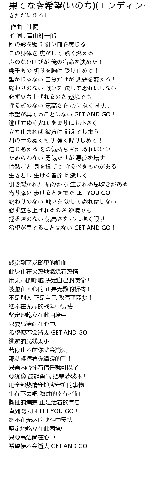 | [03:19.233] | 希望が果てることはない GET AND GO! |