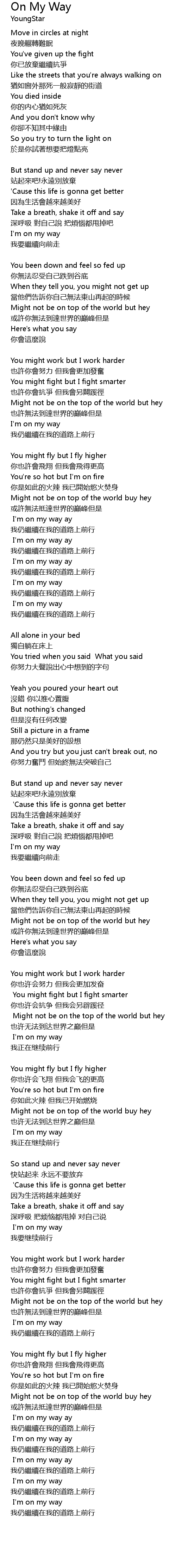 | I' m on my way ay | |
