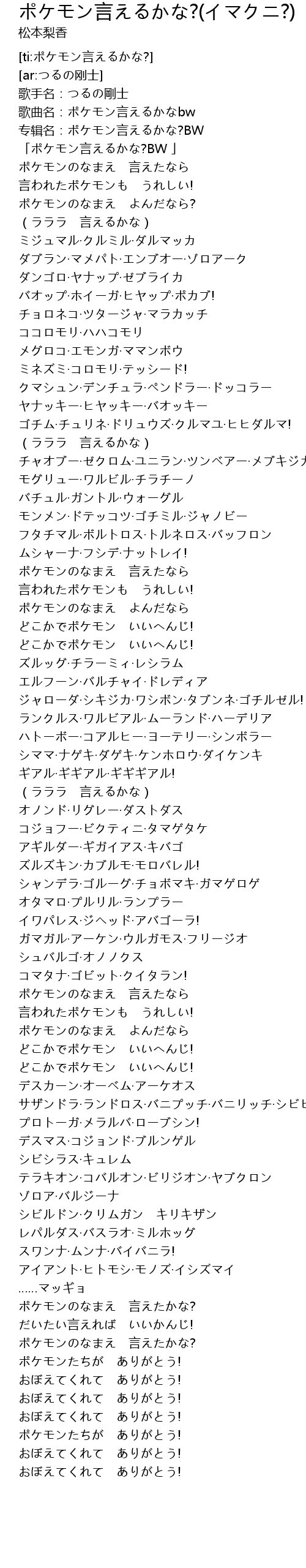 | [00:01.517] | 歌曲名:ポケモン言えるかなbw |