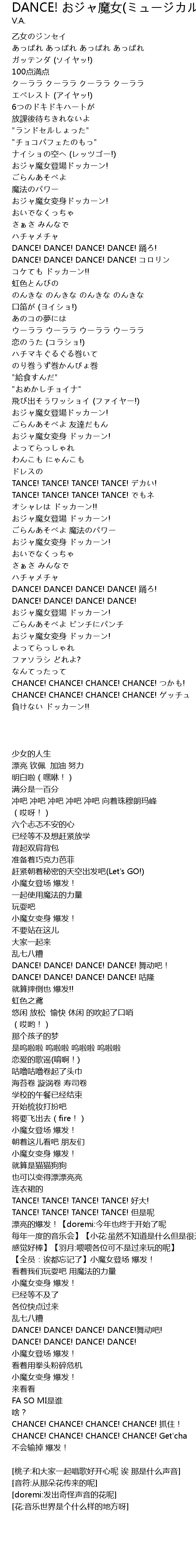 | [02:32.11] | DANCE! DANCE! DANCE! DANCE! yǒng! |