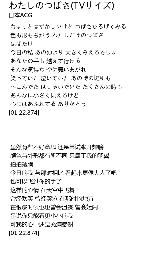 | [00:05.418] | ちょっとはずかしいけど つばさひろげてみる |