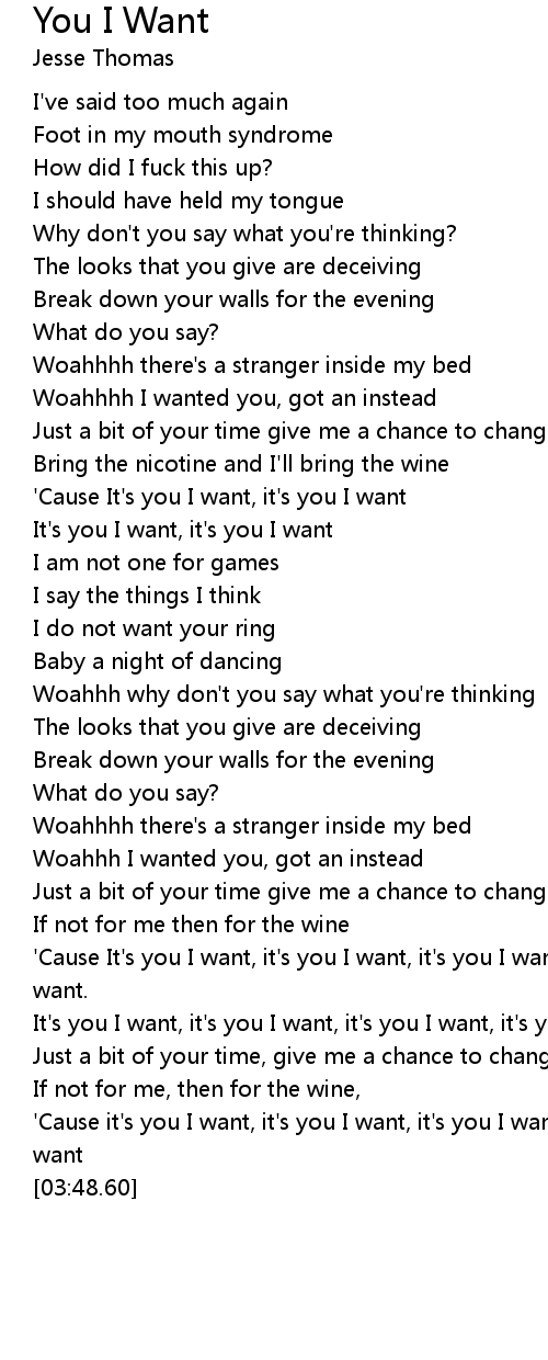 'Cause It's you I want, it's you I want, it's you I want, it's you I want. |