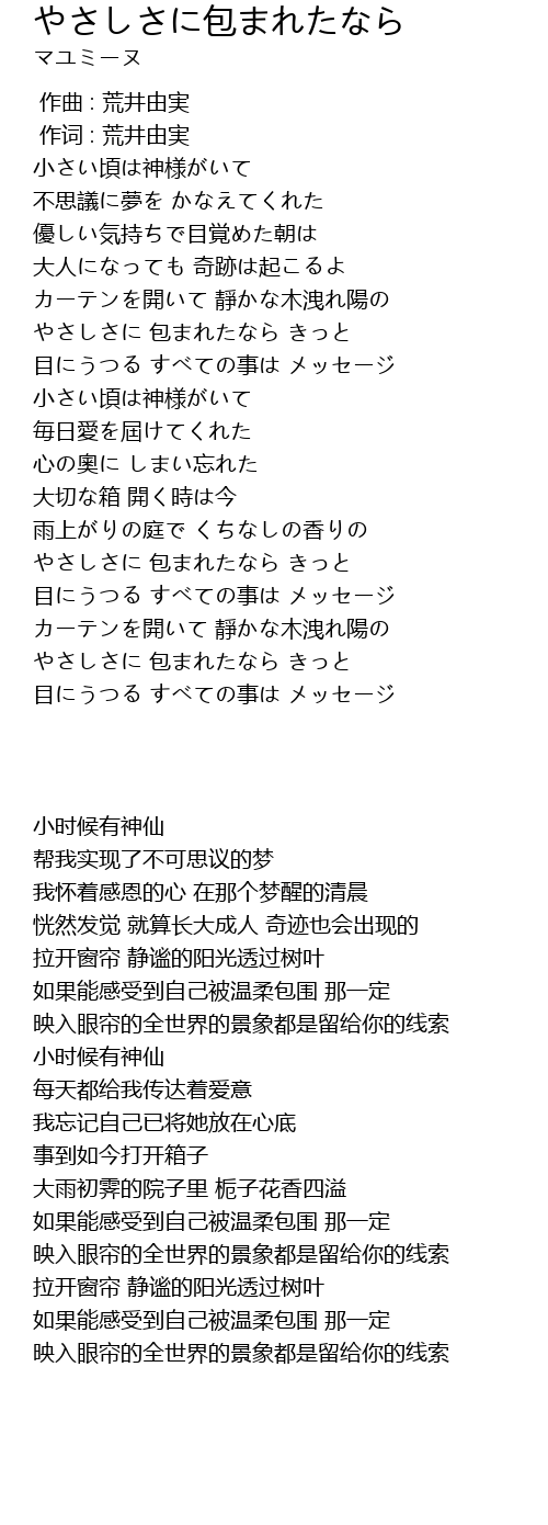 | [00:54.50] | やさしさに 包まれたなら きっと |