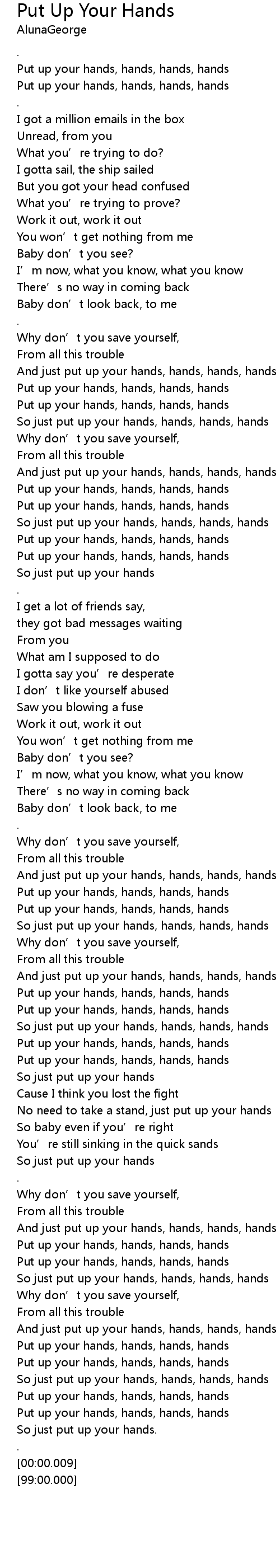| [04:02.01] | So just put up your hands, hands, hands, hands |