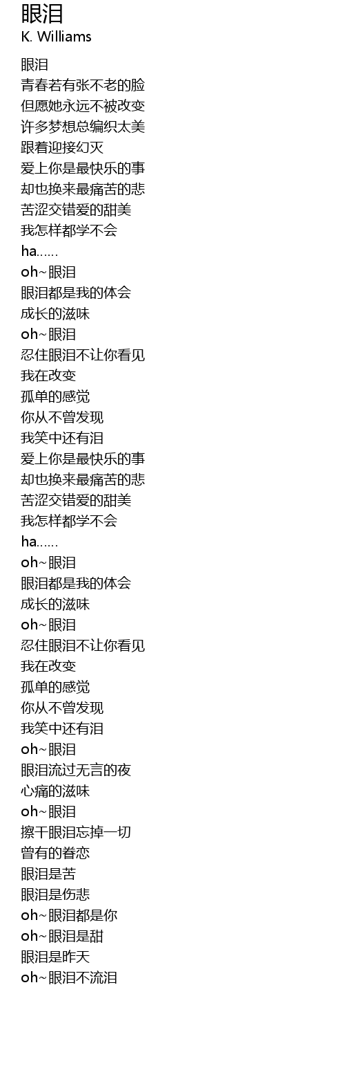 | [00:00.00] | 眼泪 |