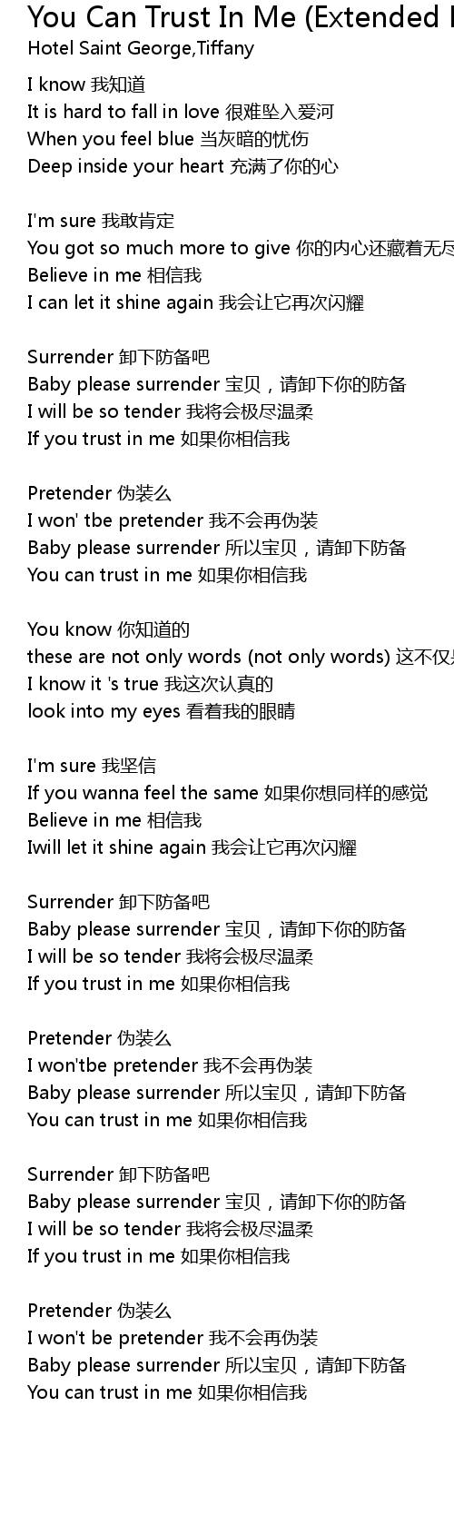 | You can trust in me rú guǒ nǐ xiāng xìn wǒ | |