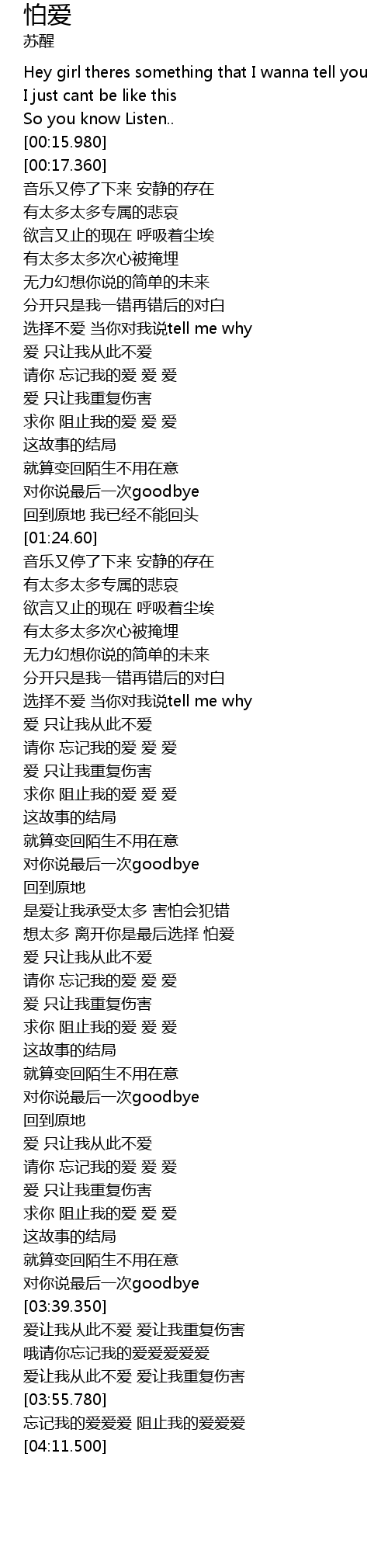 | [02:35.980] | 想太多 离开你是最后选择 怕爱 |