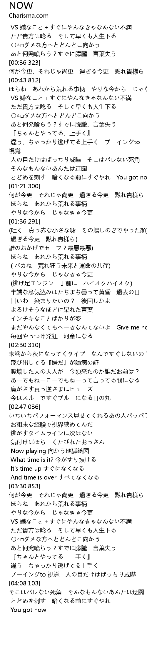 | [01:32.522] | やりな今から じゃなきゃ今更 |