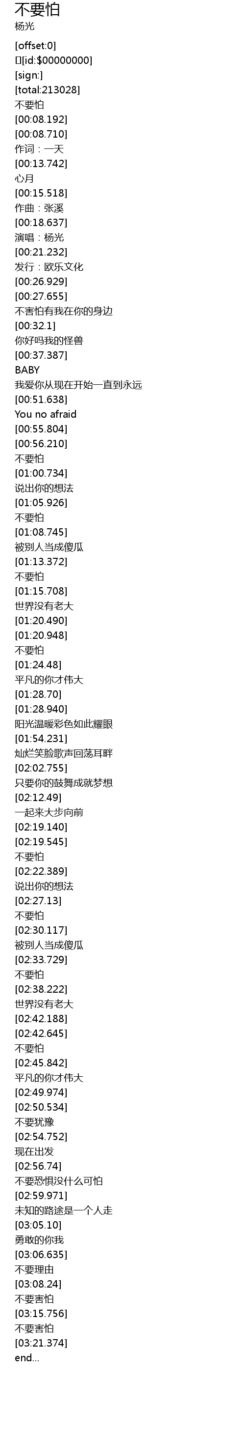 | [02:56.886] | bú yào kǒng jù méi shén me kě pà |