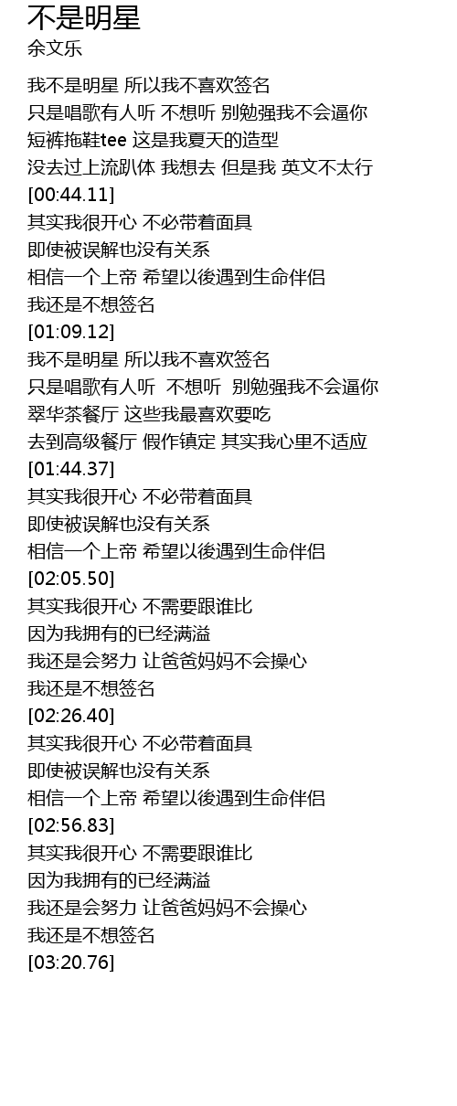 | [00:17.01] | 我不是明星 所以我不喜欢签名 |