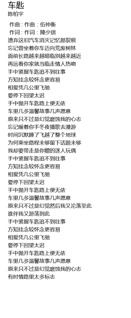 | [02:51.500] | 手中抛开车匙路上便无依 |