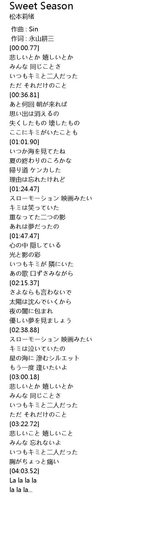 | [03:42.30] | 悲しいこと 嬉しいこと |