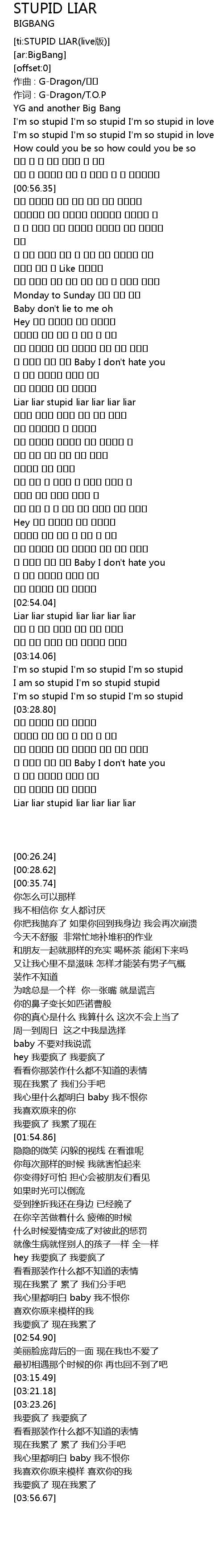 | [02:54.90] | Liar liar stupid liar liar liar liar |