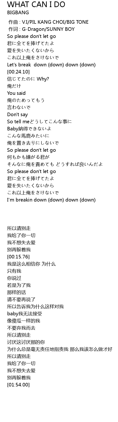 | [01:54.00] | I' m breakin down down down down |