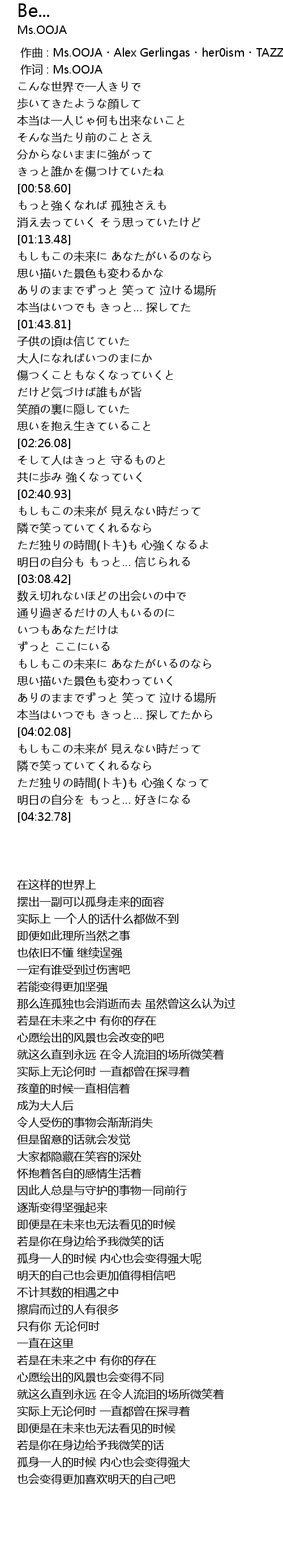 | [00:01.00] | 作词 : Ms.OOJA |