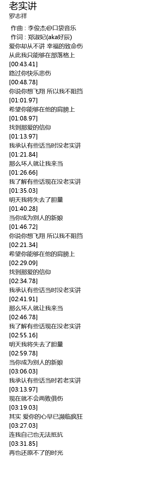 | [03:08.61] | 我承认有些话当时若老实讲 |
