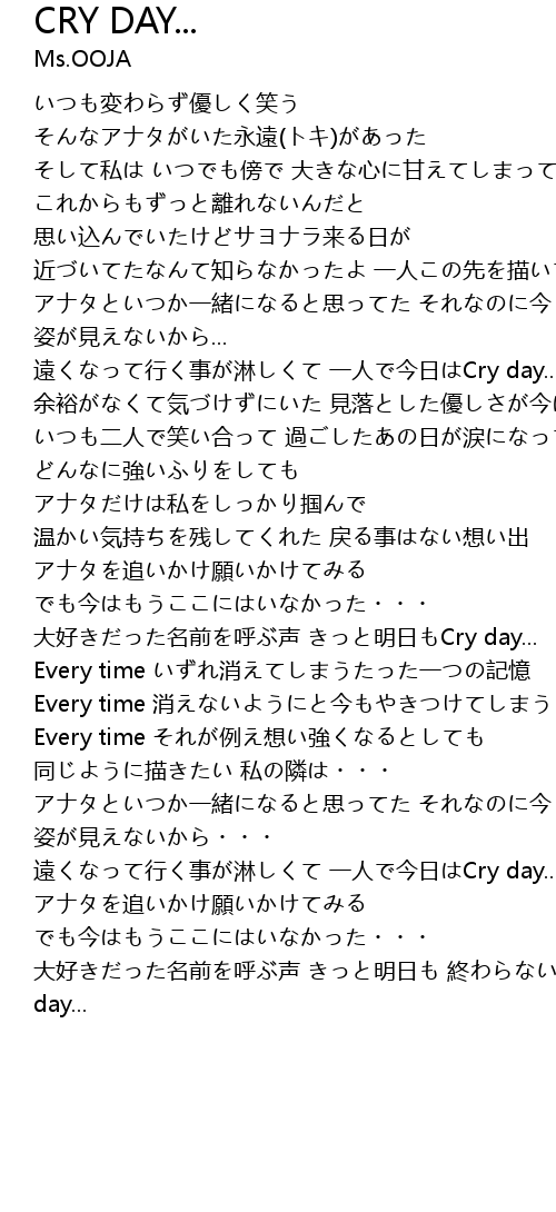 | いつも二人で笑い合って 過ごしたあの日が涙になってる | |